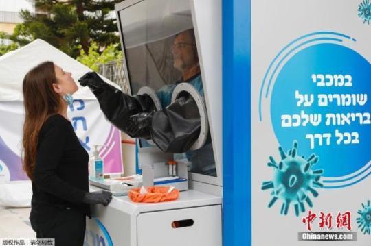 當?shù)貢r間4月16日,以色列Maccabi醫(yī)療服務公司在沿海城市特拉維夫安裝了一個新型冠狀病毒測試臺,醫(yī)務人員可以從民眾身上采集拭子樣本。