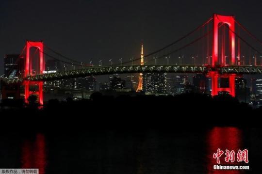 當?shù)貢r間6月2日,日本東京地標性建筑彩虹橋亮起紅燈。據(jù)報道,當日晚,日本東京都政府緊急召開新冠病毒對策總部會議,鑒于當前疫情有擴大趨勢,決定發(fā)布“東京警報”以喚起民眾注意。