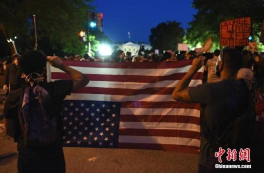 當?shù)貢r間5月31日,美國首都華盛頓連續(xù)第三天暴發(fā)反種族歧視示威抗議。圖為在白宮北側(cè)抗議的示威者。 中新社記者 陳孟統(tǒng) 攝