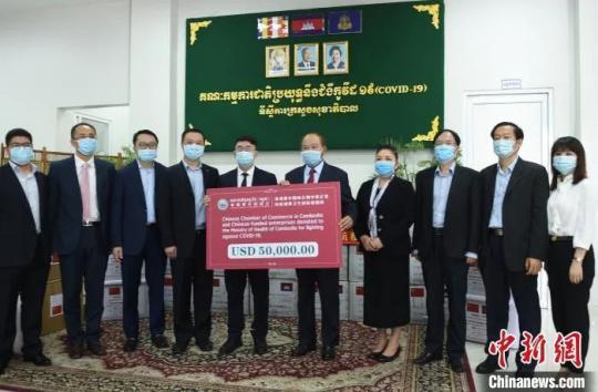 柬埔寨中國商會向柬政府捐贈一批防疫物資,圖為捐贈現(xiàn)場。(黃耀輝 攝)
