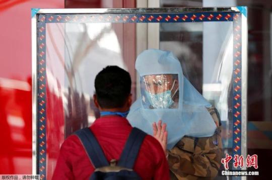 5月25日,在印度孟買希拉吉國際機(jī)場,安保人員核對旅客身份信息。