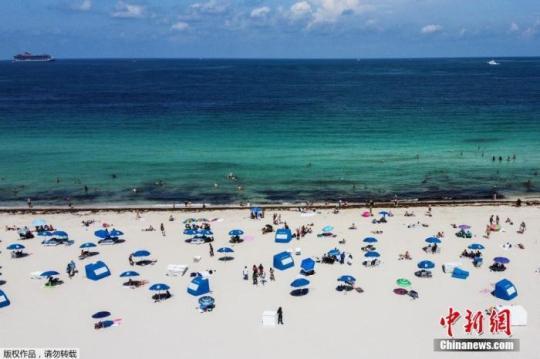 當(dāng)?shù)貢r間6月10日,佛羅里達(dá)州邁阿密海灘關(guān)閉近三個月后首次開放,工作人員在場提醒游客保持社交距離的前提下享受陽光沙灘。