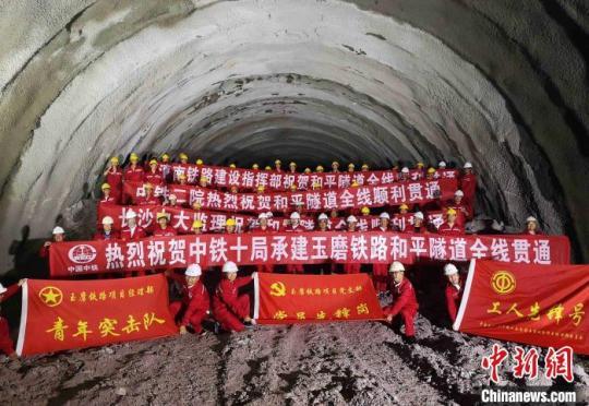 圖為6月20日和平隧道貫通,奮戰(zhàn)4年的施工人員慶祝隧道貫通。李永遠(yuǎn) 攝