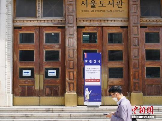6月23日,一位韓國(guó)首爾市民經(jīng)過首爾市立圖書館門前,該圖書館貼出閉館通知。近來(lái),包括韓國(guó)首爾、仁川、京畿道在內(nèi)的首都圈確診病例持續(xù)增加。 中新社記者 曾鼐 攝