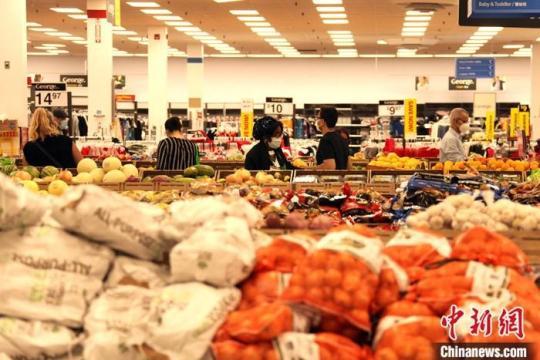 當(dāng)?shù)貢r(shí)間6月24日,加拿大多倫多一購物中心的超市內(nèi),佩戴口罩的顧客在選購食品。中新社記者 余瑞冬 攝
