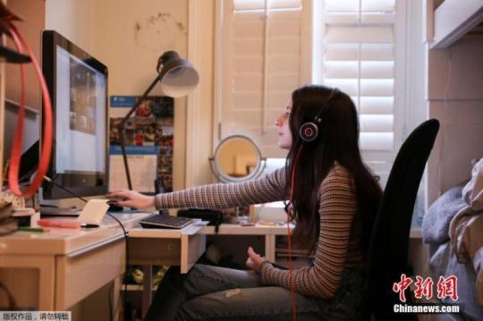 當(dāng)?shù)貢r間3月23日,美國紐約州的學(xué)生家中進行線上學(xué)習(xí)。
