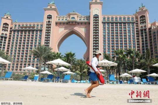 資料圖:當(dāng)?shù)貢r(shí)間7月7日,受新冠疫情影響,在闊別3個(gè)多月之后,迪拜重新向海外旅客開(kāi)放,持阿聯(lián)酋有效簽證的外國(guó)旅客即日起即可入境。圖為迪拜地標(biāo)建筑五星級(jí)棕櫚島亞特蘭蒂斯酒店重新開(kāi)放。