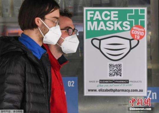 資料圖:當(dāng)?shù)貢r間7月20日,墨爾本街頭,民眾佩戴口罩出行。