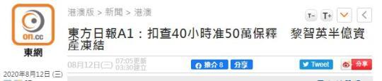 參與互動(dòng)黎智英獲準(zhǔn)保釋 港媒:以50萬(wàn)港元保釋?zhuān)?000萬(wàn)港元資產(chǎn)被凍結(jié)