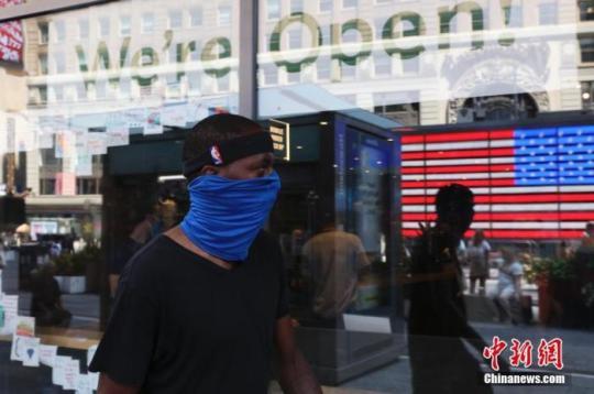 當(dāng)?shù)貢r(shí)間8月9日,美國紐約時(shí)代廣場(chǎng)的行人。