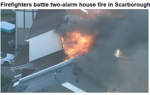 加拿大多倫多士嘉堡華人區(qū)民宅近日發(fā)生大火,一所聯(lián)排別墅屋頂被燒穿,火焰和濃煙滾滾升騰。幸運的是,火災(zāi)未造成人員傷亡。但遭遇疫情又房屋受損,肯定會影響房主心情。