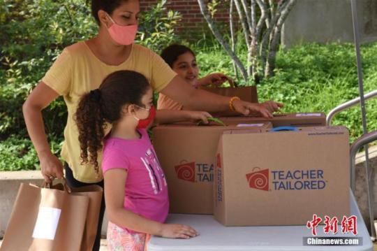 資料圖:圖為9月2日,美國弗吉尼亞州阿靈頓小學(xué)生到校領(lǐng)取新學(xué)期教學(xué)用品。 中新社記者 陳孟統(tǒng) 攝
