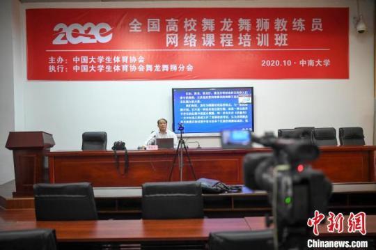 10月19日,2020年全國(guó)高校舞龍舞獅教練員網(wǎng)絡(luò)課程培訓(xùn)班在中南大學(xué)開班。培訓(xùn)采用線上直播方式,通過理論和實(shí)操方式為舞龍舞獅教練員們授課,推動(dòng)高校舞龍舞獅運(yùn)動(dòng)發(fā)展。楊華峰攝