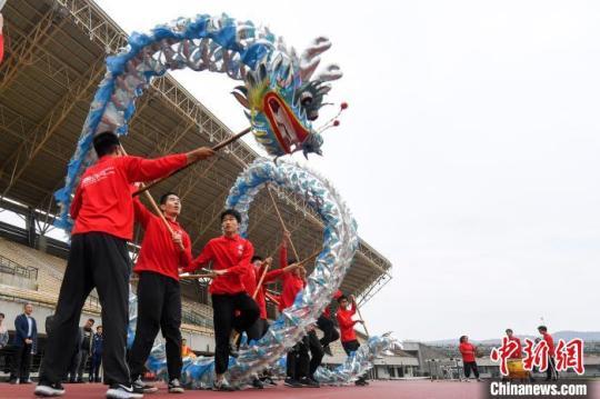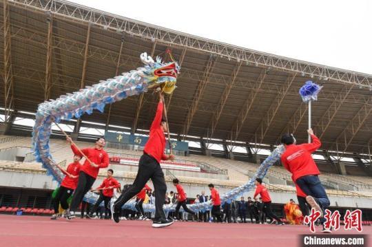 中南大學(xué)的學(xué)生展示舞龍動(dòng)作。楊華峰攝