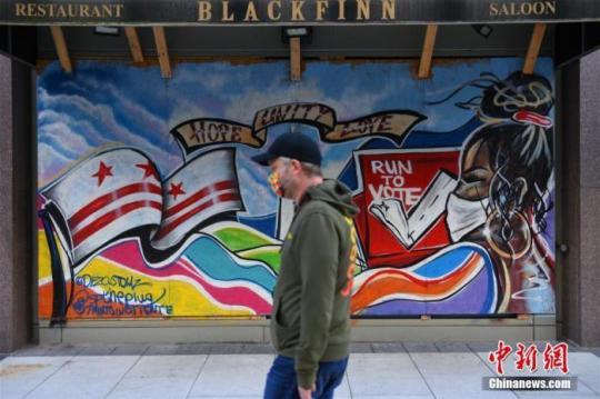 當(dāng)?shù)貢r間11月3日,美國迎來2020年大選投票日。圖為當(dāng)天首都華盛頓市區(qū)一處封上防護木板的飯店外墻。 中新社記者 陳孟統(tǒng) 攝