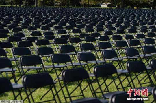 當(dāng)?shù)貢r間10月4日,美國首都華盛頓,2萬把椅子擺放在白宮外南側(cè)草坪上,悼念美國超過20萬新冠逝者。