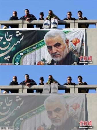 2020年1月,伊朗高級(jí)將領(lǐng)蘇萊曼尼遭美國(guó)擊殺后,民眾舉其肖像悼念。