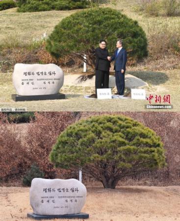 用漢拿山和長(zhǎng)白山朝鮮一側(cè)土壤填埋,用漢江水與大同江水澆灌,共同祈愿半島和平繁榮的這株松樹,寄托了太多美好心愿。