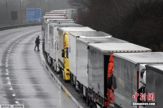 當(dāng)?shù)貢r(shí)間12月21日,歐盟多國對英實(shí)施交通封鎖,英國無法出境的長途卡車排起長隊(duì)。