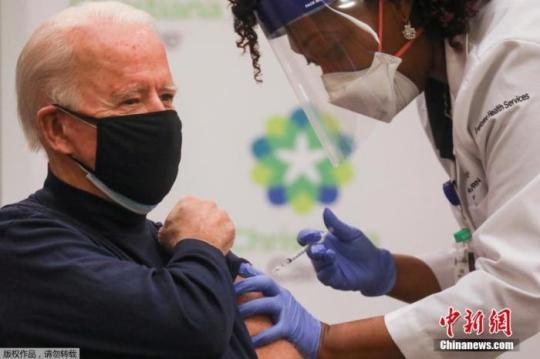 資料圖:2020年12月21日,美國(guó)當(dāng)選總統(tǒng)拜登在醫(yī)院公開接種了新冠疫苗。