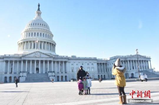 資料圖:2020年12月29日,美國首都華盛頓,民眾佩戴口罩拍照。 中新社記者 沙晗汀 攝