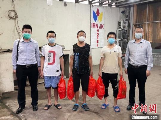 中國僑網(wǎng)圖為中國建材集團(tuán)和印尼”牽手公益”員工到賓館為同胞送“福袋”年夜飯。 張宇紅 攝