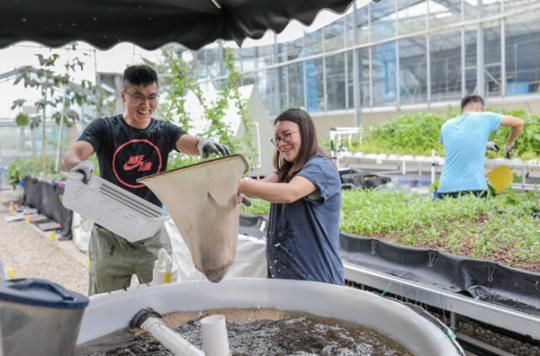 如此生態(tài)環(huán)保的高科技農(nóng)業(yè)項(xiàng)目,其創(chuàng)始人居然是三位90后香港青年——羅偉特、梁立鋒和譚慧敏,他們分別畢業(yè)于香港中文大學(xué)、香港理工大學(xué)和香港樹仁大學(xué)。三人就讀香港香島中學(xué)時(shí)是同學(xué)。讀大四時(shí),為了開展社會(huì)實(shí)踐活動(dòng),他們萌發(fā)了“魚菜共生”的點(diǎn)子,并且分工明確,譚慧敏養(yǎng)魚,羅偉特種菜,梁立鋒則負(fù)責(zé)研發(fā)、設(shè)計(jì)水循環(huán)系統(tǒng)。
