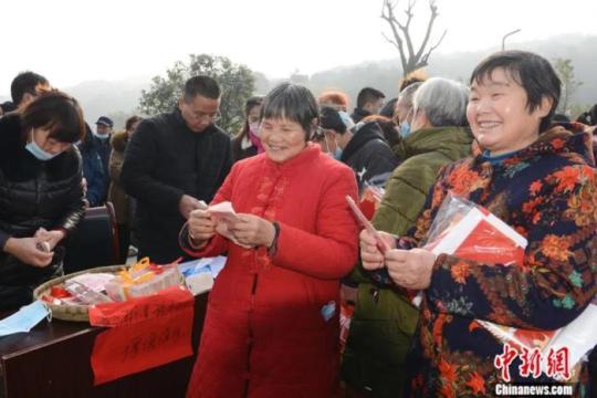 2022年1月18日,重慶南岸區(qū)南山街道放牛村舉行村股份經(jīng)濟(jì)合作聯(lián)合社分紅大會(huì)。2021年全村“三變”改革紅利近290萬元,分發(fā)給1164位村民。中新社記者 何蓬磊 攝