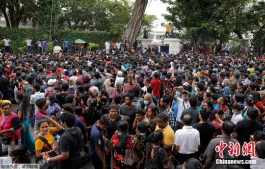 當(dāng)?shù)貢r(shí)間7月10日,斯里蘭卡大規(guī)模示威活動(dòng)現(xiàn)場。
