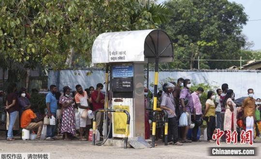 2022年3月25日,斯里蘭卡首都科倫坡,人們排隊(duì)購買燃料。
