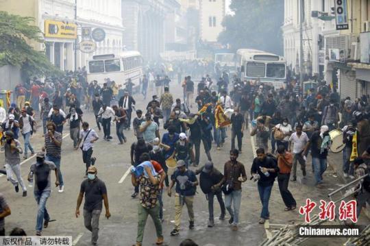 當(dāng)?shù)貢r(shí)間7月9日,斯里蘭卡首都科倫坡,警察使用催淚瓦斯驅(qū)散示威者。