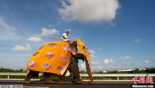 資料圖:斯里蘭卡民眾騎著大象,慶??▓D納耶克一條高速公路建成。