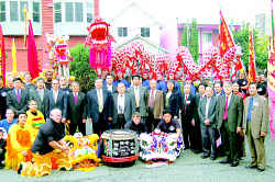 當晚的慶祝晚宴在下午6時拉開序幕,今年4月迎接中國國家主席胡錦濤訪問西雅圖時飛舞的彩龍再次展現(xiàn)雄姿,西雅圖梁崇功夫會的祥龍瑞獅在一片喜慶的鞭炮音樂聲中,表達了對祖國生日的美好祝愿。稍后,華人聯(lián)合會副主席方偉俠主持了升旗典禮,彭克玉總領事親手升起五星紅旗。