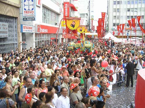 當(dāng)天中午成千上萬(wàn)巴西民眾聚集在自由區(qū)廣場(chǎng),會(huì)場(chǎng)內(nèi)外及附近街道掛滿(mǎn)中國(guó)的紅燈籠、中國(guó)錦旗幡帳,路邊擺滿(mǎn)中國(guó)的美食及工藝品售貨攤亭,到處洋溢著中國(guó)春節(jié)的熱烈喜慶氣氛。