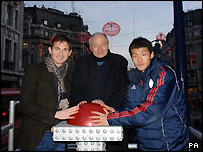 和利文斯通一起點(diǎn)亮春節(jié)燈籠的是英超切爾西球員弗蘭克·蘭帕德和中國(guó)國(guó)奧隊(duì)球員王大雷。