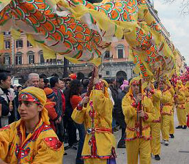 慶;顒(dòng)中,來(lái)自羅馬武術(shù)學(xué)校的意大利學(xué)生們表演了舞龍舞獅和中國(guó)武術(shù);來(lái)自羅馬中華語(yǔ)言學(xué)校的華僑小朋友展示了傳統(tǒng)的中國(guó)服裝——旗袍和中國(guó)名曲——《梁!;留學(xué)生代表和羅馬婦女會(huì)的代表演唱了中國(guó)和意大利的民歌。在場(chǎng)的僑胞們和意大利友人也都紛紛隨著音樂載歌載舞。