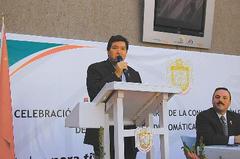 慶祝儀式正午時分開始,市長等主賓登臺就座后,樂隊演奏墨中兩國國歌與歡迎曲。中國駐提璜納總領(lǐng)事館代理館長路曉明在會中致詞,回顧兩國建交、提璜納中領(lǐng)館開館以來,雙邊關(guān)系順利發(fā)展的歷程,強調(diào)中墨兩個發(fā)展中國家在各領(lǐng)域的共同利益與相似立場,使兩國得以在國際舞臺互相支持。路曉明感謝提璜納市政府一貫重視對華關(guān)系、關(guān)心當(dāng)?shù)厝A裔權(quán)益。