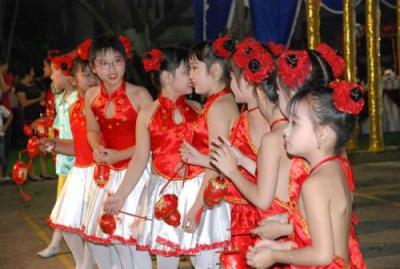 當晚節(jié)目包括了由天使舞蹈團呈獻的舞蹈表演、飛翔組合呈獻的歌唱表演、Stamanara舞者的現(xiàn)代舞、Nuansa Kapuas Group小朋友的中華舞蹈、煙火表演、廣肇江夏堂黃氏龍舞團的舞獅表演、舞龍表演、抽獎等。