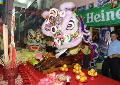 因此,過(guò)去每逢喜慶節(jié)日,尤其是農(nóng)歷新年初一、初二期間,都不難發(fā)現(xiàn)華裔家庭愛邀請(qǐng)舞獅隊(duì)在住家進(jìn)行采青活動(dòng),為新一年討取好運(yùn)氣。