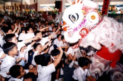 新春期間的舞獅表演是當(dāng)?shù)貍鹘y(tǒng)文化特色,除了相信其具有驅(qū)邪及帶來(lái)興旺的作用外,敲鑼打鼓的熱鬧更是讓喜慶氣氛在地區(qū)上蔓延開去。