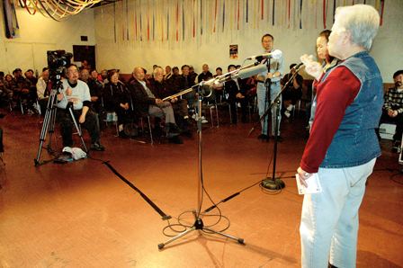 近200名人頭稅人士當(dāng)?shù)貢r間4月21日在溫哥華華埠旁邊的卡內(nèi)基社區(qū)中心聚集,再次爭取后人得到賠償。組織該活動的加拿大人頭稅親屬會安排了錄影設(shè)備,讓到場人士在鏡頭前表達(dá)自己的訴求。