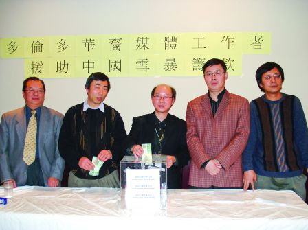 由來自“多倫多網(wǎng)上電視”、“多倫多在線”、《星星生活》及《北美生活報》本地4個華文媒體的傳媒工作者,4日宣布成立“援助中國雪暴基金”委員會,將于今日開設(shè)“援助中國雪暴基金”銀行捐款帳戶,并會在“多華會”屬下4個辦事處設(shè)立捐款箱,接受公眾幫助中國受災(zāi)地區(qū)的捐款。
