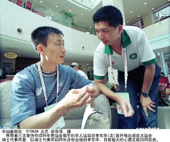 采訪(fǎng)的話(huà)題從他的最新頭銜“國(guó)家?jiàn)W運(yùn)代表團(tuán)特使”開(kāi)始。瑞士官方任命他為特使,顯然是看上了他的中國(guó)背景。出生在成都的李東華7歲開(kāi)始練體操,16歲進(jìn)入國(guó)家體操隊(duì),是李寧、童非、樓云等體操名將的同門(mén)師弟。近些年他每年都要回國(guó)看望父母,打理在成都和汕頭的兩家企業(yè)。另一方面,李東華21歲那年隨新婚妻子到瑞士定居,從最初的生活困頓、受人冷眼和排斥的二等公民,成為風(fēng)光一時(shí)的“國(guó)家英雄”,他的傳奇故事在瑞士當(dāng)?shù)貜V為傳頌,被推崇個(gè)人奮斗的瑞士社會(huì)中的許多人視為偶像。