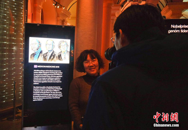 12月5日,諾貝爾獎(jiǎng)委員會(huì)在斯德哥爾摩市中心的諾貝爾博物館舉行新聞發(fā)布會(huì),介紹“諾貝爾周”的相關(guān)情況。2015年諾貝爾獎(jiǎng)生理學(xué)或醫(yī)學(xué)獎(jiǎng)得主、中國科學(xué)家屠呦呦的照片當(dāng)天已經(jīng)出現(xiàn)在了諾貝爾博物館,并引起了中國游客的關(guān)注,紛紛與屠呦呦的照片合影。中新社記者 沈晨 攝