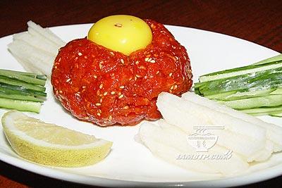 日本人稱生魚(yú)片為“沙西米”。一般的生魚(yú)片,以鰹魚(yú)、鯛魚(yú)、鱸魚(yú)配制,最高檔的生魚(yú)片是金槍魚(yú)生魚(yú)片。開(kāi)宴時(shí),讓你看到一缸活魚(yú),現(xiàn)撈現(xiàn)殺,剝皮去刺,切成如紙的透明狀薄片,端上餐桌,蘸著佐料細(xì)細(xì)咀嚼,滋味美不可言。不吃生魚(yú)的外國(guó)人,嘗了一次便想吃第二次了。