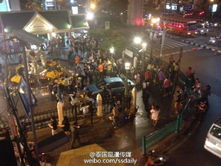 泰國(guó)一轎車闖入曼谷四面佛處 有中國(guó)游客受傷(圖)