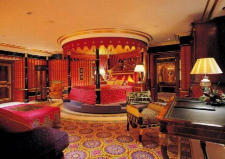 這座與阿聯(lián)酋總統(tǒng)府僅一街之隔的宮殿式飯店,擁有1300多米長的黃金海岸線。整個(gè)酒店耗資30億美元,內(nèi)部面積達(dá)242820平方米。