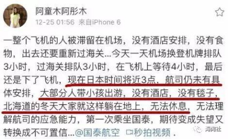 可以看出,滯留旅客所處環(huán)境非常惡劣,機場也盡可能提供了毛毯等,但食品、電源、暖氣等還是難以滿足所有人。尤其是兒童、身體欠佳的乘客,更是雪上霜。一連滯留幾日,人們的精神壓力也是前所未有的,憤怒、怨氣、不滿難以避免地顯現(xiàn)出來。