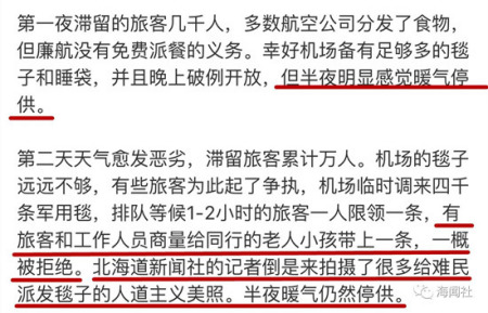 ●一位在國內(nèi)某民航就職的員工介紹,哪家公司的飛機先飛,哪家的后飛,機場方面沒有決定權,都是根據(jù)各家航空公司自己的運力和航班調(diào)配來操作的。遇到大雪這樣的特殊天氣,各家航空公司可能都不會有多余的座位留給別的航空公司用來簽轉(zhuǎn)旅客,那就只能由旅客所乘坐的航班所屬的航空公司來內(nèi)部消化滯留的乘客,消化到什么時候,用什么方式消化,都由航空公司來決定。她認為,日本機場應該不存在對哪一國的旅客的“歧視”和差別對待。