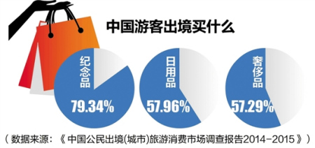中國游客“買買買”名聲已傳遍全球。LV、Chanel、Hermes、PRADA、Rolex,這些奢侈品名牌服飾、手表店,隨處可見國人身影。而近年來,高端日用品也異軍突起,馬桶蓋、牙膏、電飯煲,甚至鍋碗瓢盆,這些國外超市貨柜上的商品同樣吸引著中國游客。根據(jù)《中國公民出境(城市)旅游消費(fèi)市場調(diào)查報(bào)告2014-2015》,近八成的中國游客在境外旅行時會買紀(jì)念品,一半的游客會購買日用品,與購買奢侈品的游客比例持平。